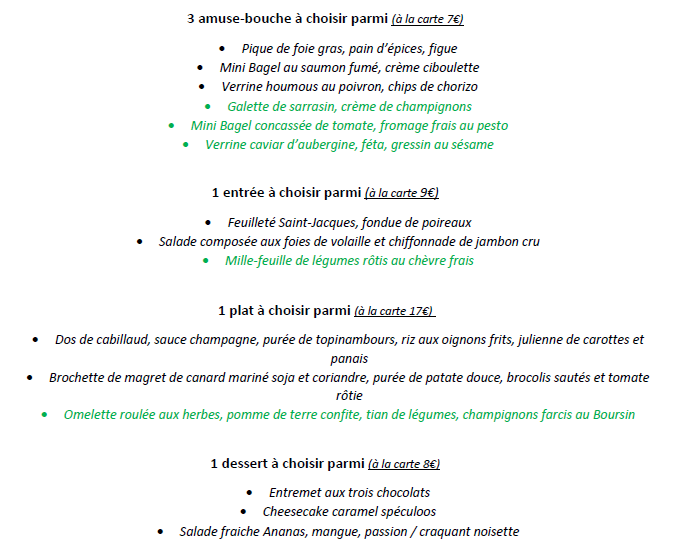 Pensez à réserver votre repas pour les fêtes au tarif de 37 euros TTC par personne.